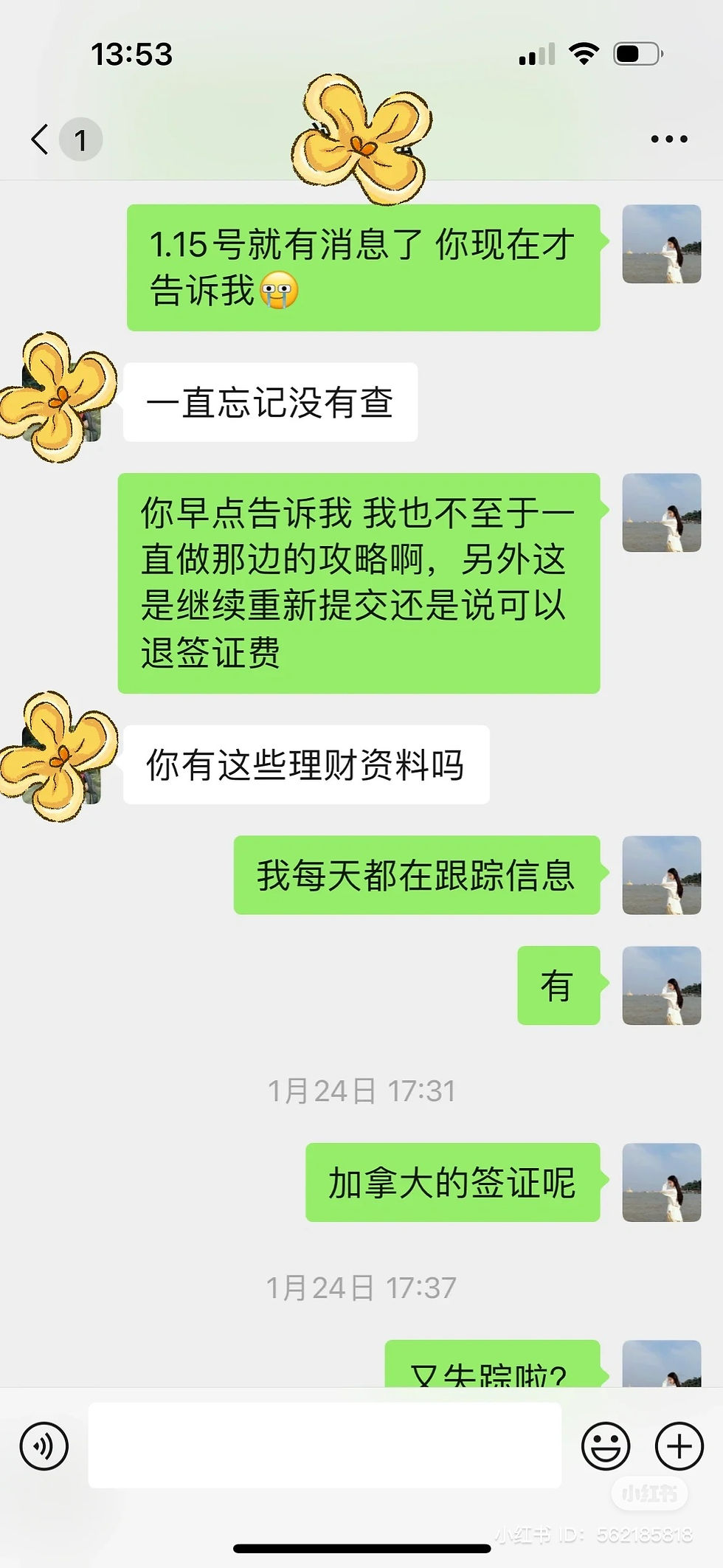朋友推荐的几年前找他办过日本签证,所以这次办签证也找他,没想到让我的签证多了加拿大和澳洲的两个拒签记录!首先我说一下我的个人情况:单身女,名下一台车,提交的时候有50w+的银行理财资产,有日本、泰国越南的出境记录,在一个设计公司在职,男友加拿大籍,所以我办加拿大签证。接下来就是他的神奇操作: